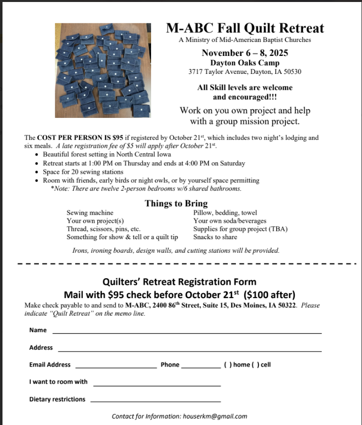 Called by God and empowered by the Holy Spirit to embody and proclaim the Good News of Jesus Christ as Lord, Mid-American Baptist Churches is a covenanting association of American Baptist churches in Minnesota and Iowa. We are interdependent and diverse congregations and individuals working and praying together to build up the Body of Christ.